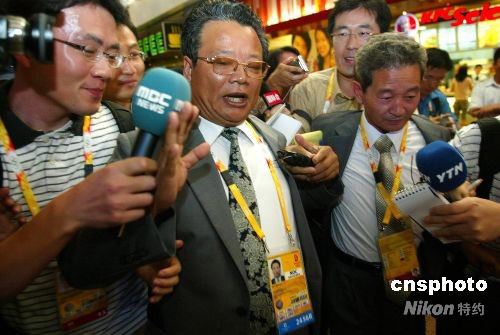 8月2日,朝鮮奧委會主席樸學(xué)先(中)率朝鮮奧運代表團(tuán)飛抵北京首都國際機(jī)場。