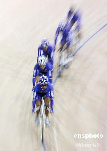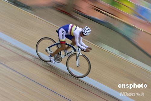 8月4日,哥倫比亞隊(duì)隊(duì)員在北京老山自行車館進(jìn)行訓(xùn)練,備戰(zhàn)即將開幕的北京奧運(yùn)會(huì)。 中新社發(fā) 武仲林 攝