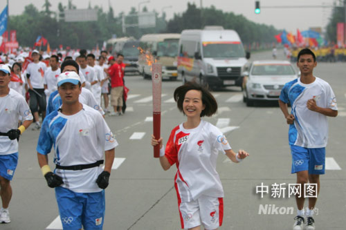 中新網(wǎng)8月5日電 鳳凰衛(wèi)視當(dāng)家花旦陳魯豫今天(8月5日)在四川成都傳遞奧運(yùn)火炬。