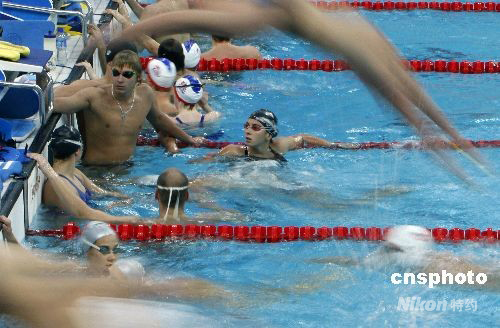 8月6日,北京國家游泳館熱鬧非凡,各國游泳高手云集“水立方”適應(yīng)場地,備戰(zhàn)即將開幕的奧運會。中新社發(fā) 杜洋 攝