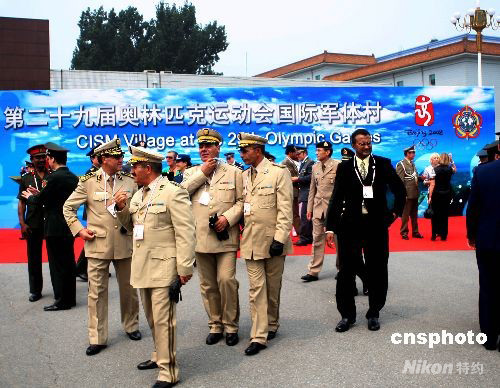 圖:駐華武官參加國(guó)際軍體村開村儀式