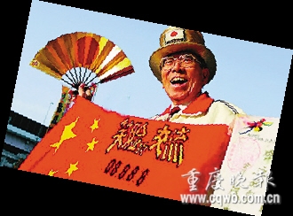 山田老人為北京奧運加油。 圖片來源:重慶晚報