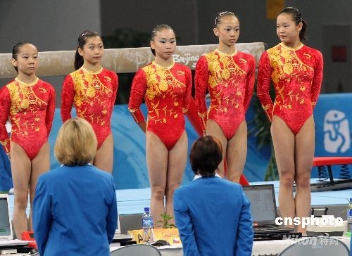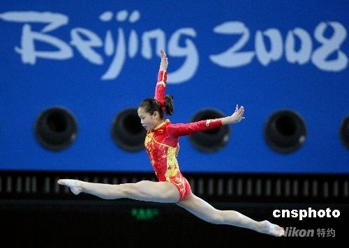 8月10日上午,北京奧運(yùn)會女子體操團(tuán)體資格賽在北京奧林匹克公園內(nèi)的國家體育館舉行,由世界冠軍程菲領(lǐng)銜的中國隊由平衡木比賽開始向團(tuán)體冠軍沖擊。中新社發(fā) 任晨鳴 攝