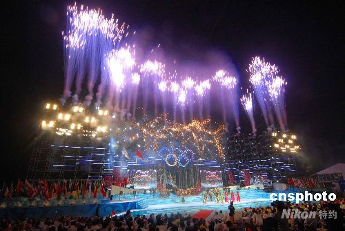 8月9日晚8點,2008年北京奧運會帆船比賽啟動儀式在青島奧林匹克帆船中心奧運主題公園舉行,場面氣勢恢宏。 中新社發(fā) 王曉光 攝