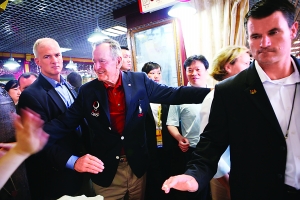 昨天中午11時(shí)許,美國(guó)總統(tǒng)布什的父親和女兒造訪秀水街。數(shù)十名身材高大的貼身保鏢“陣容強(qiáng)大”地護(hù)衛(wèi)在左右。