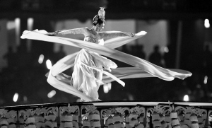 奧運(yùn)開幕式《絲路》表演環(huán)節(jié),一位飛天女神仙袂飄飄,瞬間就將宏大壯觀的畫面“切換”到安靜柔美的飛天舞中。