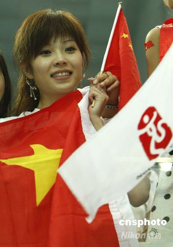 圖為王峰愛妻王丹在現(xiàn)場為丈夫加油助威。