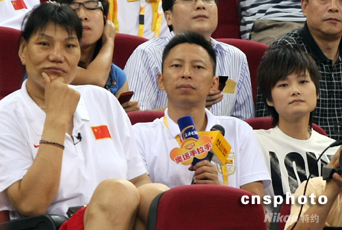 8月14日下午,北京奧運(yùn)會(huì)男子籃球小組第四輪賽事在北京五棵松籃球館舉行,同為兩戰(zhàn)兩負(fù)的中國隊(duì)與安哥拉隊(duì)展開“生死大戰(zhàn)”。昔日中國女籃超級(jí)中鋒、身高2.04米的鄭海霞,超女李宇春等到場為中國隊(duì)助威。 中新社發(fā) 任晨鳴 攝
