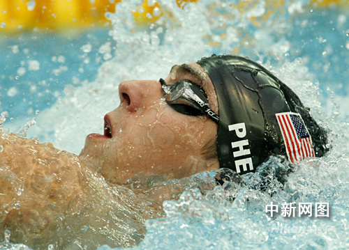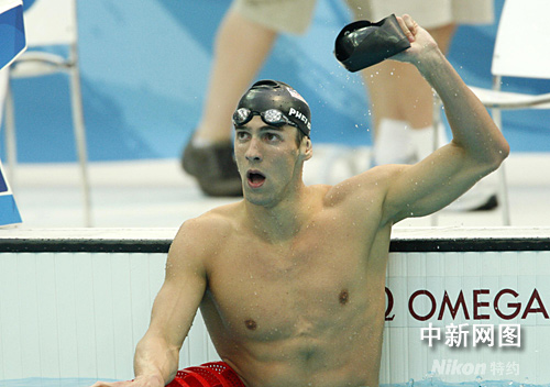 8月15日上午,在國家游泳中心水立方舉行的北京奧運(yùn)會(huì)男子200米混合泳中,美國選手菲爾普斯續(xù)寫神話,以1分54秒23的成績打破由他自己保持的1分54秒80的世界紀(jì)錄,收取他在本屆奧運(yùn)會(huì)的第6枚金牌,也是他奪取的奧運(yùn)會(huì)第12塊金牌。中新社發(fā) 杜洋 攝