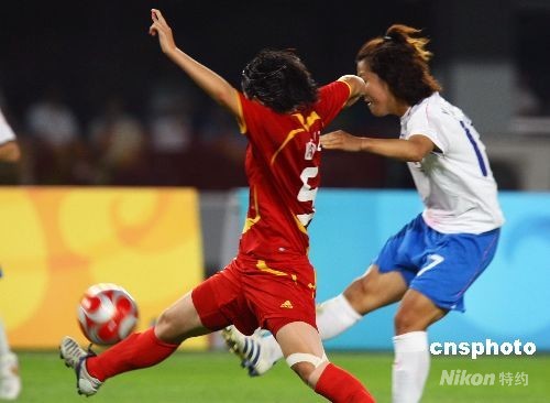 8月15日晚,北京奧運會女足1/4決賽中國隊與日本隊的比賽剛剛結(jié)束,中國隊0:2不敵日本隊,無緣四強。 中新社發(fā) 劉新 攝