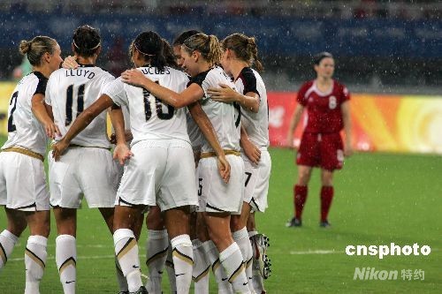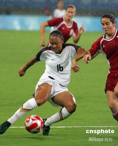 8月15日,北京奧運會女足,美國VS加拿大的比賽在上海體育場進(jìn)行。最終,美國隊以2:1戰(zhàn)勝加拿大隊,挺進(jìn)四強。中新社發(fā) 湯彥俊 攝