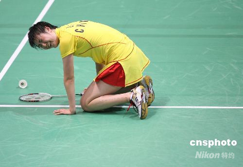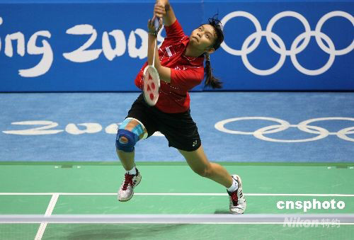 8月16日,中國(guó)選手盧蘭在北京奧運(yùn)會(huì)羽毛球女單銅牌決賽中以1:2負(fù)于印尼選手瑪麗亞·克麗斯廷·尤利安蒂,無(wú)緣銅牌。 中新社發(fā) 武仲林 攝