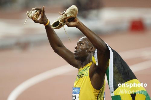8月16日,牙買加“奇人”博爾特最終用實(shí)力證明他是世界上跑得最快的人。當(dāng)晚,他僅用了9秒69就跑到了100米跑道的終點(diǎn),并刷新了自己2個(gè)多月前創(chuàng)下的9秒72的世界紀(jì)錄,一舉奪得北京奧運(yùn)會(huì)男子100米冠軍。 中新社發(fā) 盛佳鵬 攝