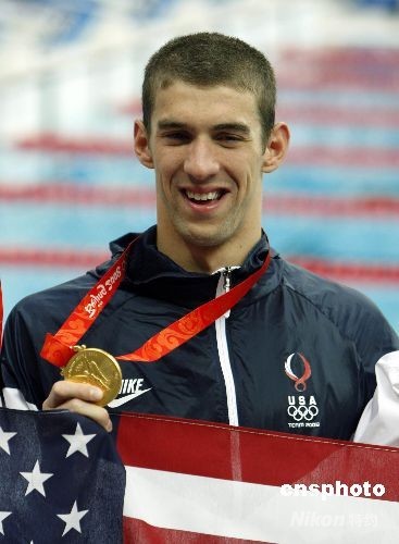 8月17日,美國隊(duì)獲得北京奧運(yùn)會男子4乘100米混合泳接力冠軍,至此,23歲的美國游泳運(yùn)動員菲爾普斯不僅用8金刷新了單屆奧運(yùn)會金牌紀(jì)錄,而且還將個人所有奧運(yùn)會的金牌總數(shù)提高到了14枚,達(dá)成了他人難以超越的“世界紀(jì)錄”。中新社發(fā) 杜洋 攝