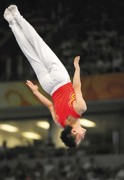 8月16日,北京奧運會蹦床資格賽在國家體育館進行,力爭實現(xiàn)這一項目奧運金牌零突破的中國選手在比賽中顯示了強大的實力。