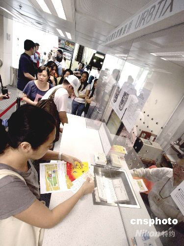 八月二十一日,中國奧運(yùn)金牌精英訪港表演門票開始發(fā)售,香港市民通宵在售票點(diǎn)排隊(duì)購票。入場票在今早十時開始發(fā)售,圖為市民踴躍購買。