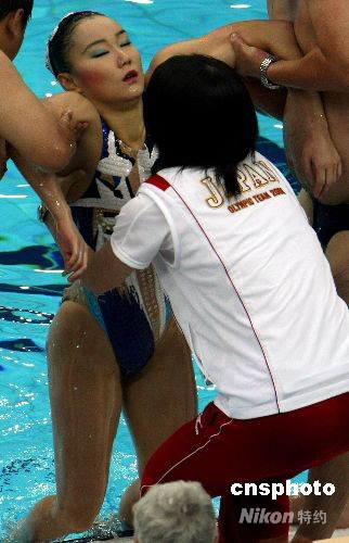8月23日,北京奧運(yùn)會花樣游泳的壓軸戲上演,八只強(qiáng)隊(duì)爭奪獎牌,長期位居世界大賽前三位置的日本隊(duì)不但出現(xiàn)失誤丟失銅牌,而且在比賽結(jié)束后一名選手在水中失去自治能力,在奧運(yùn)會救護(hù)人員與日本隊(duì)隊(duì)友保護(hù)下緩緩挪到岸邊后昏厥,即刻被送醫(yī)院搶救。