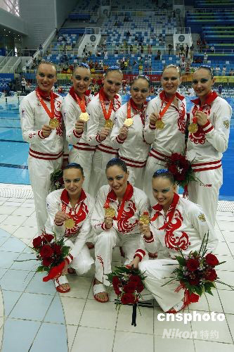 圖:俄羅斯花游隊在集體項目決賽中獲得金牌