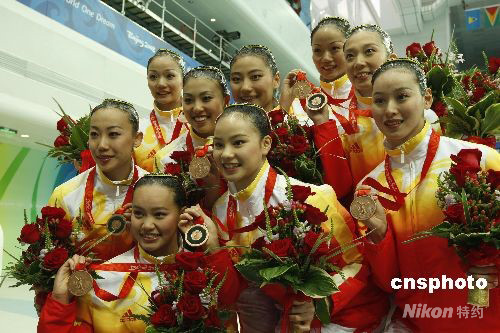 中國花樣游泳隊奪得女子自由自選銅牌。中新社發(fā) 杜洋 攝