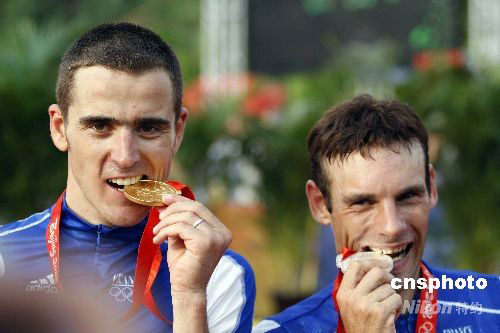 8月23日,在北京老山山地自行車場進(jìn)行的男子自行車越野賽中,法國名將朱利安-阿布薩隆(左)以1小時55分59秒成功衛(wèi)冕該項(xiàng)目的冠軍。法國另一位選手讓-克里斯托夫-佩羅(右)以1小時57分06秒的成績獲得銀牌。 中新社發(fā) 盛佳鵬 攝