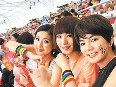 組圖:明星粉絲當奧運啦啦隊 梅婷臉貼國旗助威(2)