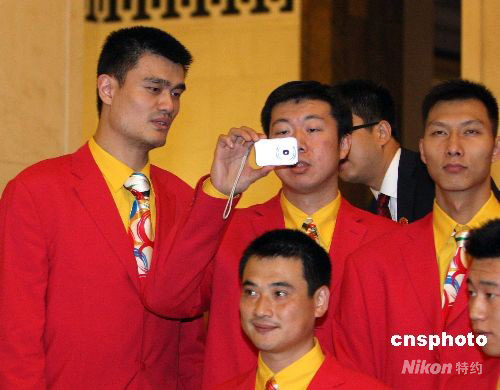 8月26日,2008年北京奧運(yùn)會(huì)中國體育代表團(tuán)總結(jié)大會(huì)在北京人民大會(huì)堂金色大廳舉行。圖為中國男籃隊(duì)員參加北京奧運(yùn)會(huì)中國體育代表團(tuán)總結(jié)大會(huì)。 中新社發(fā) 廖文靜 攝