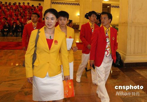 8月26日,2008年北京奧運(yùn)會(huì)中國(guó)體育代表團(tuán)總結(jié)大會(huì)在北京人民大會(huì)堂金色大廳舉行。王楠、郭躍參加北京奧運(yùn)會(huì)中國(guó)體育代表團(tuán)總結(jié)大會(huì)。中新社發(fā) 廖文靜 攝