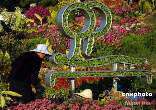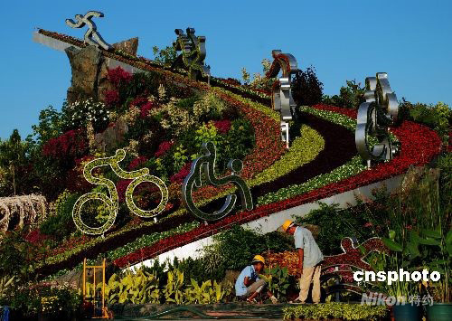 2008年9月1日,20個殘奧會運動造型標志亮相北京天安門廣場。據(jù)介紹,今年的廣場擺花是歷史上最長的一次,分三個階段制定主題,一直持續(xù)到10月份。中新社發(fā) 楊慧峰 攝