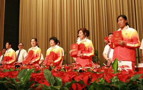 中新網(wǎng)9月4日電 據(jù)香港《大公報》報道,山東省昨天舉行隆重的表彰大會,王峰、劉春紅、杜麗、張娟娟、奚愛華5名奧運冠軍與參加北京奧運會的其它運動員和教練員受到表彰。