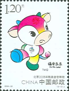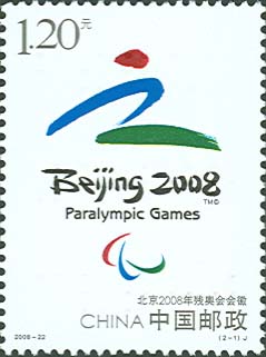 中新網(wǎng)9月4日電 據(jù)國家郵政局網(wǎng)站消息,國家郵政局定于2008年9月6日發(fā)行《北京2008年殘奧會》紀念郵票1套2枚,志號:2008-22。圖案分別為:北京2008年殘奧會會徽和北京2008年殘奧會吉祥物,面值均為1.20元。