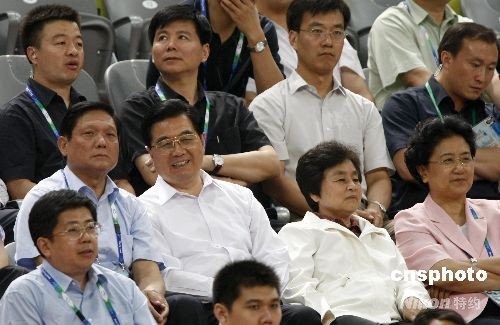 9月7日,北京殘奧會(huì)輪椅籃球的一場(chǎng)預(yù)賽在中國(guó)男籃和英國(guó)隊(duì)之間展開,中國(guó)國(guó)家主席胡錦濤和夫人觀看了中國(guó)隊(duì)與英國(guó)隊(duì)的比賽。 中新社發(fā) 盛佳鵬 攝