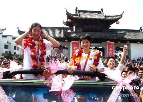圖:奧運(yùn)冠軍吳靜鈺、金紫薇載譽(yù)回鄉(xiāng)