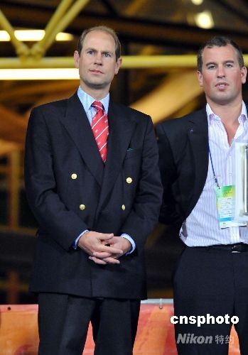 九月九日晚,英國皇室成員愛德華王子(左)到香港沙田觀看殘奧馬術項目比賽,為英國馬術隊員打氣,當晚,馬術三項賽事中,英國隊奪得兩金一銀佳績。中新社發(fā) 鄧慶樂 攝