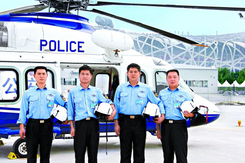 奧運會期間,北京市公安局的四架警用直升機(jī)共飛行40架次,主要在奧運場館的上空執(zhí)行巡邏監(jiān)控和警戒、支援等任務(wù)。
