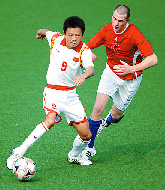 平均年齡20歲出頭、集訓(xùn)時間不到兩年的中國腦癱足球隊,今天以2∶10負于英國隊。他們賽前就知道自己遠不是那些平均年齡近40歲、配合時間長達十余年的對手,但他們堅持拼完整場比賽,他們只想告訴觀眾,他們絕不會放棄。