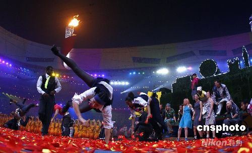 9月17日晚,北京2008年殘奧會(huì)閉幕式在國(guó)家體育場(chǎng)舉行。在閉幕式上下屆舉辦城市英國(guó)倫敦進(jìn)行了“倫敦八分鐘”表演。 中新社發(fā) 杜洋 攝