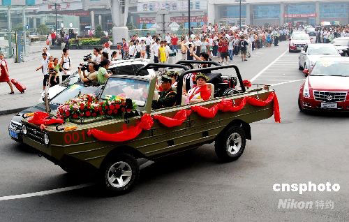 圖:江西以水陸兩棲車迎殘奧會“英雄”回家