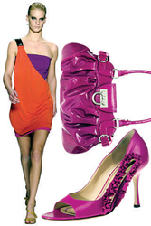 回顧上世紀80年代的時尚潮流,自由、開放、眼花繚亂、略帶點頹廢,最明顯的標志莫過于色彩的沖撞。那個年代幾乎將所有的色彩都聚在了一起,對比色、跳躍色、熒光色等?傊,那些純度偏高的色彩總是能給人帶來視覺刺激的愉悅和個人感情釋放的快感。于是,有了Isabella Fiore的“Love”綠色挎包;L.A.M.B的橙色和綠色拼合運動茄克;Marc Jacob的黃色露趾平底鞋;Nike的多色相拼運動連衣裙;Sonia Rykiel的黑白對比色視幻大手鐲……