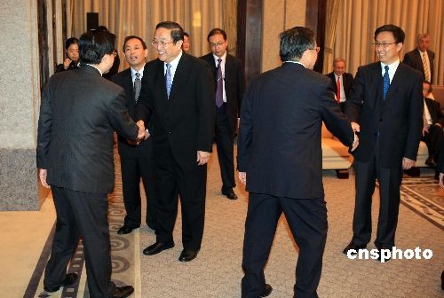 圖:俞正聲、韓正會見臺灣大企業(yè)董事長參訪團(tuán)