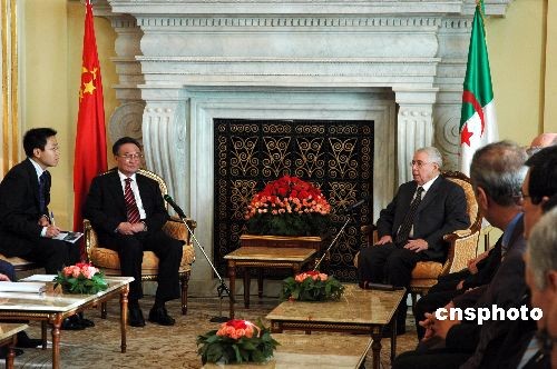 吳邦國向阿爾及利亞無名烈士紀(jì)念碑敬獻(xiàn)花圈