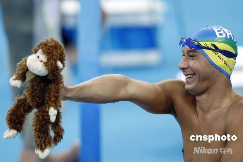 圖:巴西游泳選手?jǐn)y“猴子”亮相決賽場