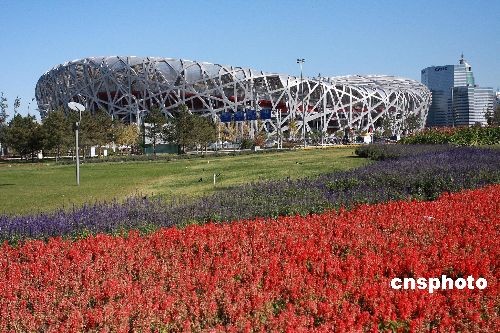 圖:北京奧林匹克公園里百花爭艷美景如畫