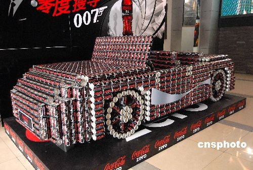圖:汽水罐組成“汽車”現(xiàn)杭州