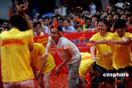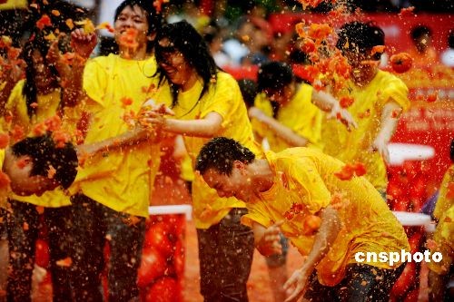 趣圖:廣東東莞上演萬(wàn)人“番茄大戰(zhàn)”(2)