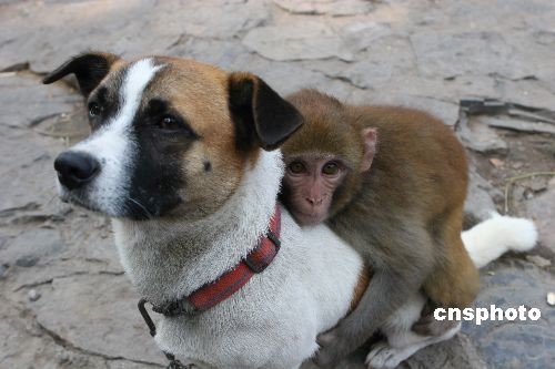 趣圖:猴寶寶認(rèn)狗為“父” 仗狗勢(shì)猴山稱“王”