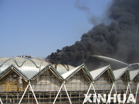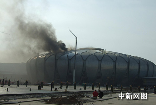在建的濟南奧體中心場館再次發(fā)生火災(圖)