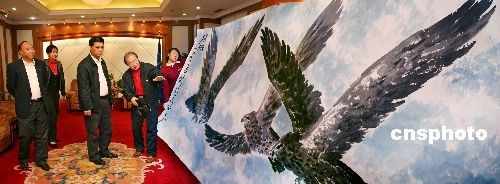 圖:國畫作品《騰飛》贊美中國航天人