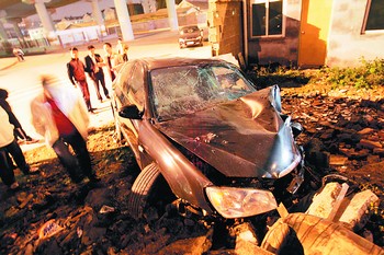 長沙一輛轎車撞進基建工地內(nèi)