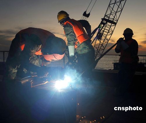 圖:遷曹鐵路曹妃甸特大橋施工進入沖刺階段