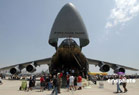 當?shù)貢r間5月4日,位于美國南加州河濱縣的一個美國空軍預(yù)備基地舉行規(guī)模盛大的航空展和飛行表演。C-17A全球霸王運輸機、C-5銀河運輸機等空中巨無霸和F-22猛禽戰(zhàn)機等美軍先進軍用飛機亮相展覽,F(xiàn)-22戰(zhàn)機飛行表演、美國空軍“雷鳥”飛行隊的特技表演等令近十萬民眾大飽眼福。